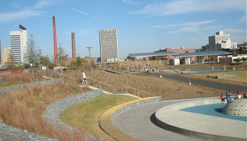 Railroad Park is a 19-acre park in downtown Birmingham overlooking the